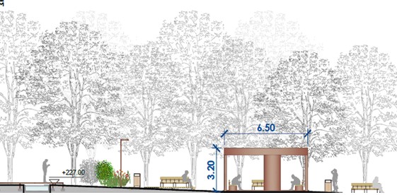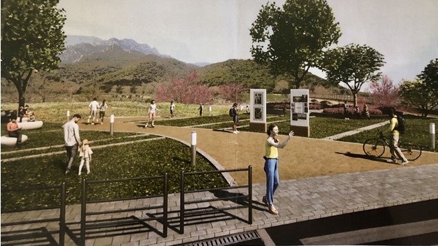 Ο χώρος θα αναβαθμιστεί αισθητικά και λειτουργικά, με παρεμβάσεις ενίσχυσης της βλάστησης, νέες φυτεύσεις, σύγχρονο σύστημα άρδευσης και συνολικό εξωραϊσμό, ενώ θα εξοπλιστεί με σύγχρονες υποδομές όπως τραπεζοπάγκους, χώρους υπαίθριας εστίασης, καθιστικά, φωτισμό, χώρους στάθμευσης και πληροφοριακή σήμανση.