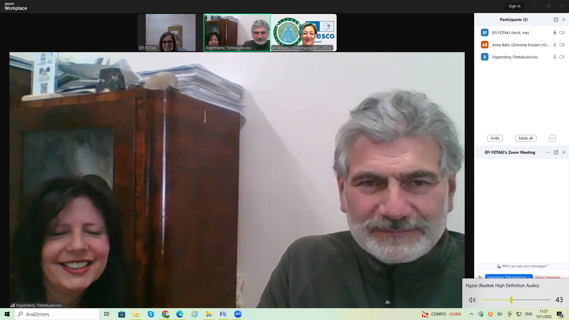 Την Τετάρτη 15 Ιανουαρίου 2025 εκπρόσωποι των Γεωπάρκων Γρεβενών – Κοζάνης, Βίκου – Αώου και Μετεώρων-Πύλης συναντήθηκαν διαδικτυακά με κύριο θέμα συζήτησης τη δημιουργική και αποτελεσματική ανάπτυξη σχέσεων συνεργασίας σε διάφορους τομείς μεταξύ των τριών φορέων.