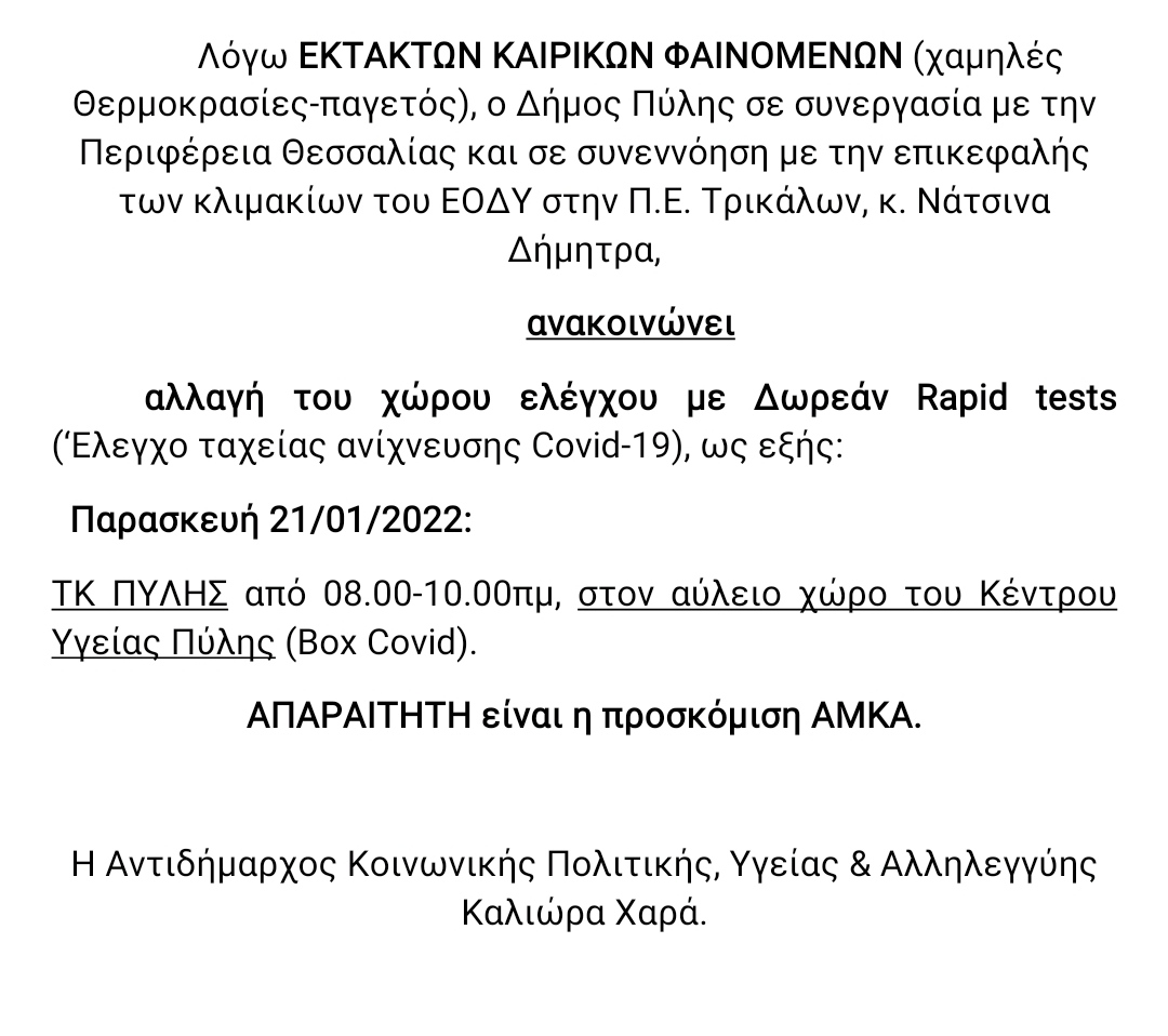 ‘Eλεγχο ταχείας ανίχνευσης Covid-19