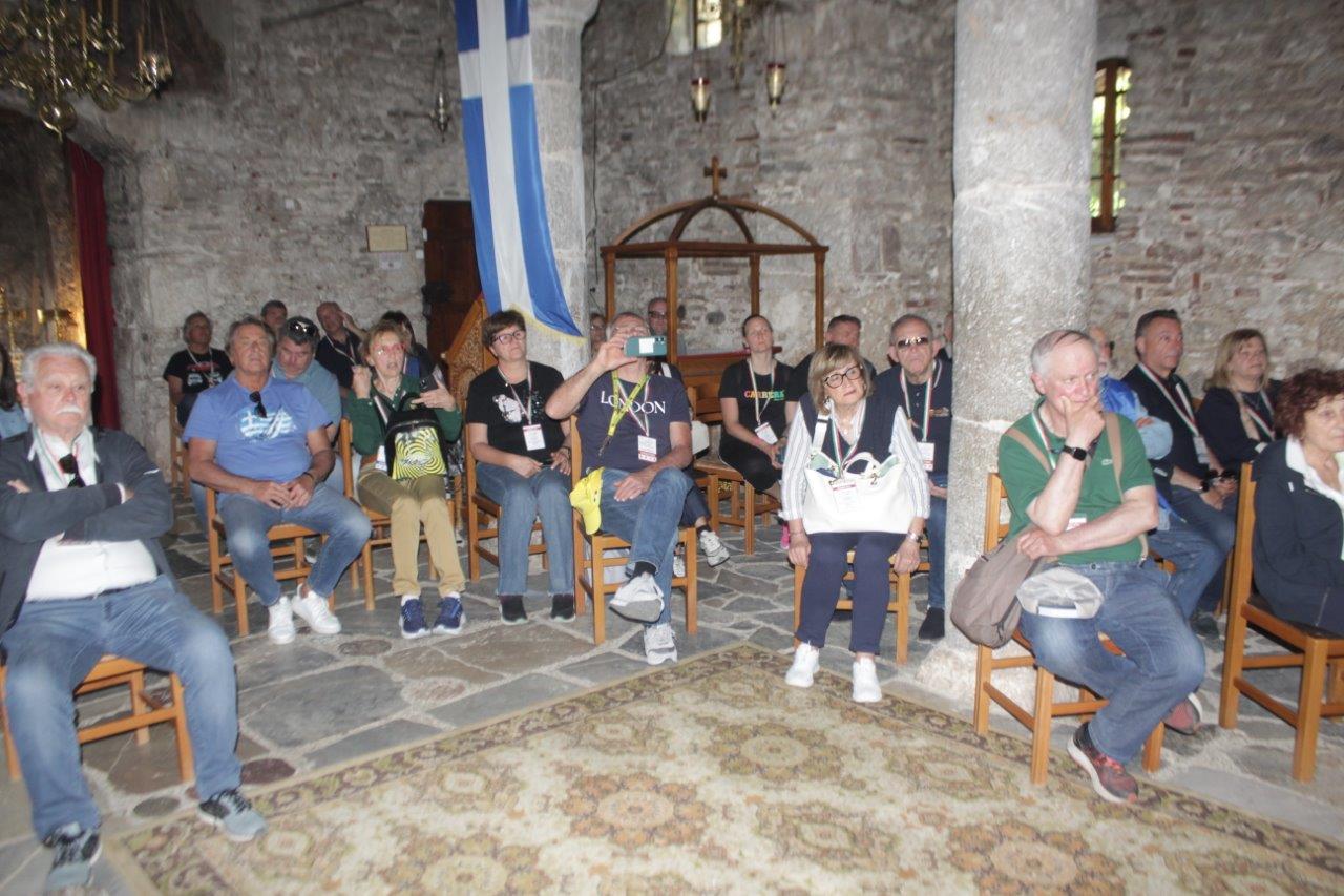 Κατά την παραμονή τους στην Πύλη, οι συμμετέχοντες είχαν την ευκαιρία να ξεναγηθούν στον Ιερό Ναό από τον επιστάτη κ. Στάθη Καϊκή, γνωρίζοντας την ιστορία και τη μοναδική πολιτιστική αξία του μνημείου. Στη συνέχεια, η αποστολή απόλαυσε καφέ, προσφορά του Δήμου Πύλης, στον μαγευτικό χώρο της τοξωτής γέφυρας του Αγίου Βησσαρίωνα.