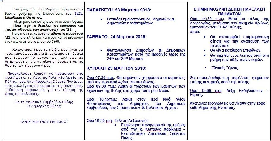 Είναι όλα έτοιμα για τον εορτασμό της 25ης Μαρτίου στον Δήμο Πύλης.