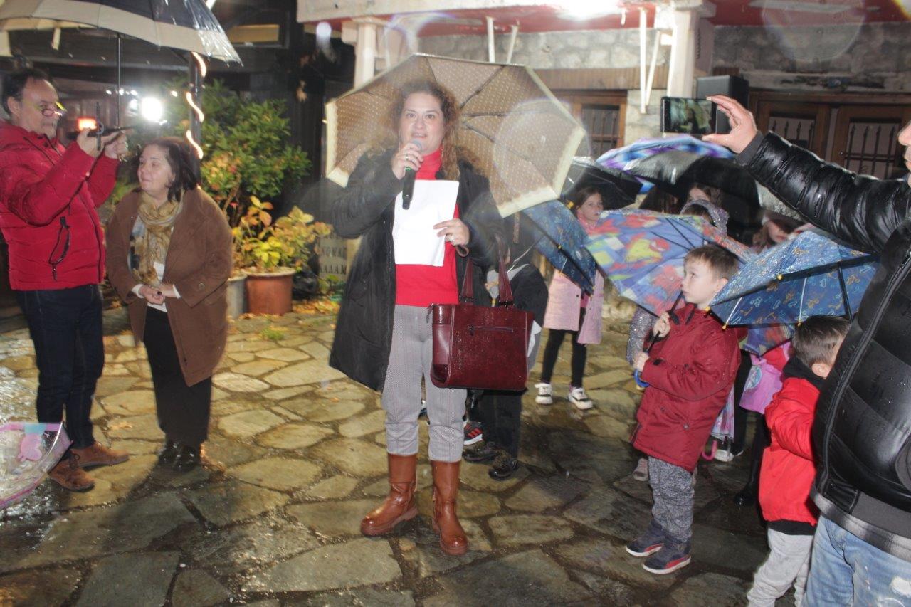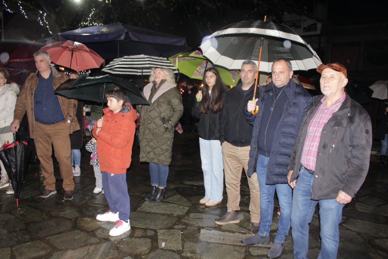 Η χριστουγεννιάτικη εκδήλωση του ανάμματος του δένδρου έλαβε χώρα στην πλατεία της Ελάτης, κάτω από συνεχή βροχή, γεγονός που δεν εμπόδισε τον κόσμο και τα παιδιά να κατακλύσουν το χώρο της πλατείας, προστατευόμενοι με ομπρέλες και με χειμωνιάτικη ένδυση.