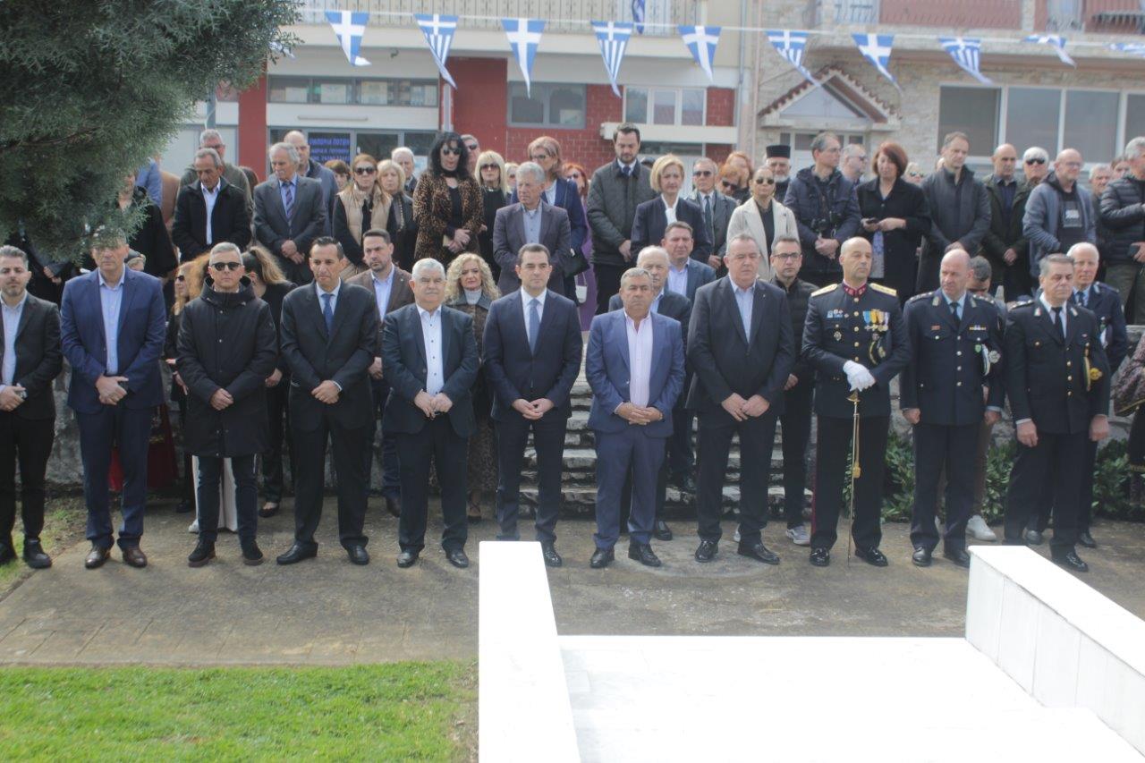 Ακολούθησε η Επιμνημόσυνος Δέηση και η κατάθεση στεφάνων στο Μνημείων των Ηρώων στον χώρο του ΕΠΑΛ Πύλης από τον Δήμαρχο Πύλης κ. Κωνσταντίνο Μαράβα, τον Εκπρόσωπο της Κυβέρνησης βουλευτή και Γραμματέα της Πολιτικής Επιτροπής της ΝΔ κ. Κωνσταντίνο Σκρέκα, τον Εκπρόσωπο της Π.Ε. Τρικάλων (Περιφέρειας Θεσσαλίας) κ. Αθανάσιο Ξάφο, τον Εκπρόσωπο της ΣΜΥ Συντ/ρχη κ. Απόστολο Γούλα, των εκπροσώπων των Σωμάτων Ασφαλείας της Πύλης , μαθητών των Σχολείων της Πύλης Α’ θμιας και Β’ θμιας Εκπαίδευσης και φορέων της Πύλης.