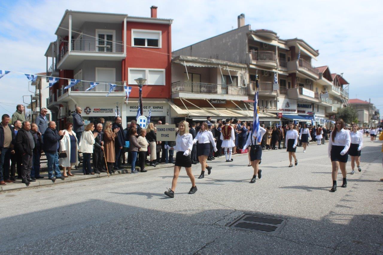 Το αποκορύφωμα της εκδήλωσης ήταν η μεγαλειώδης παρέλαση στον κεντρικό δρόμο της Πύλης έμπροσθεν της Εξέδρας των Επισήμων με επικεφαλής τον Δήμαρχο Πύλης κ. Κων/νο Μαράβα από την μαθητιώσα νεολαία των Σχολείων της Πύλης, του αγήματος της ΣΜΥ, των τμημάτων του Πολιτιστικού Συλλόγου Πύλης και του Πολιτιστικού-Μορφωτικού και Λαογραφικού Συλλόγου Γυναικών Παλαιομοναστήρου, οχημάτων του Α.Τ. Πύλης και Πυροσβεστικού Κλιμακίου Πύλης, που απέσπασαν το θερμό χειροκρότημα του κόσμου που κατέκλυσαν την κεντρική οδό.