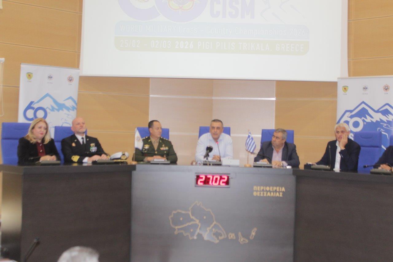 Πραγματοποιήθηκε την Παρασκευή 27 Φεβρουαρίου η συνέντευξη Τύπου στις 13.00 στην αίθουσα των Συνεδριάσεων του Περιφερειακού Συμβουλίου στην Λάρισα εν’ όψει του 60ο Στρατιωτικού Πρωταθλήματος Ανωμάλου Δρόμου Ενόπλων Δυνάμεων CISM 2026, που θα διεξαχθεί την Κυριακή 1η Μαρτίου στις (ΣΚΑΜΝΙΕΣ) στην Πηγή (Τ.Κ. Δήμου Πύλης).