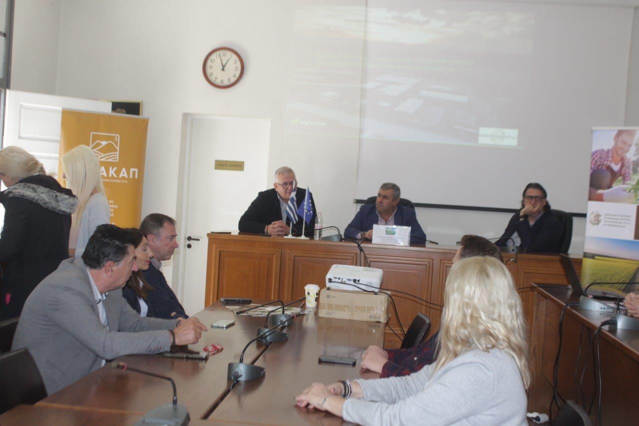 Παρόντες ήταν η κ. Έφη Φωτάκη Αν. Προϊσταμένη του Αυτοτελούς Τμήματος Τοπικής Οικονομικής Ανάπτυξης του Δήμου Πύλης , οι Αντιδήμαρχοι Αγροτικής Ανάπτυξης –Αθλητισμού κ. Σωτήρης Αγγέλης, Παιδείας –Τουρισμού κ. Κωνσταντίνος Πλαστήρας, η κ. Γλυκερία Θυμιάκου Μηχανικός στέλεχος του ΚΕΝΑΚΑΠ Α.Ε., η κ. Σπυριδούλα Κομπογιάννη Μηχ. Περιβάλλοντος της Αναπτυξιακής Πηλίου και ο κ. Στέφανος Τσιάκας γεωπόνος στέλεχος του ΚΕΝΑΚΑΠ Α.Ε.
