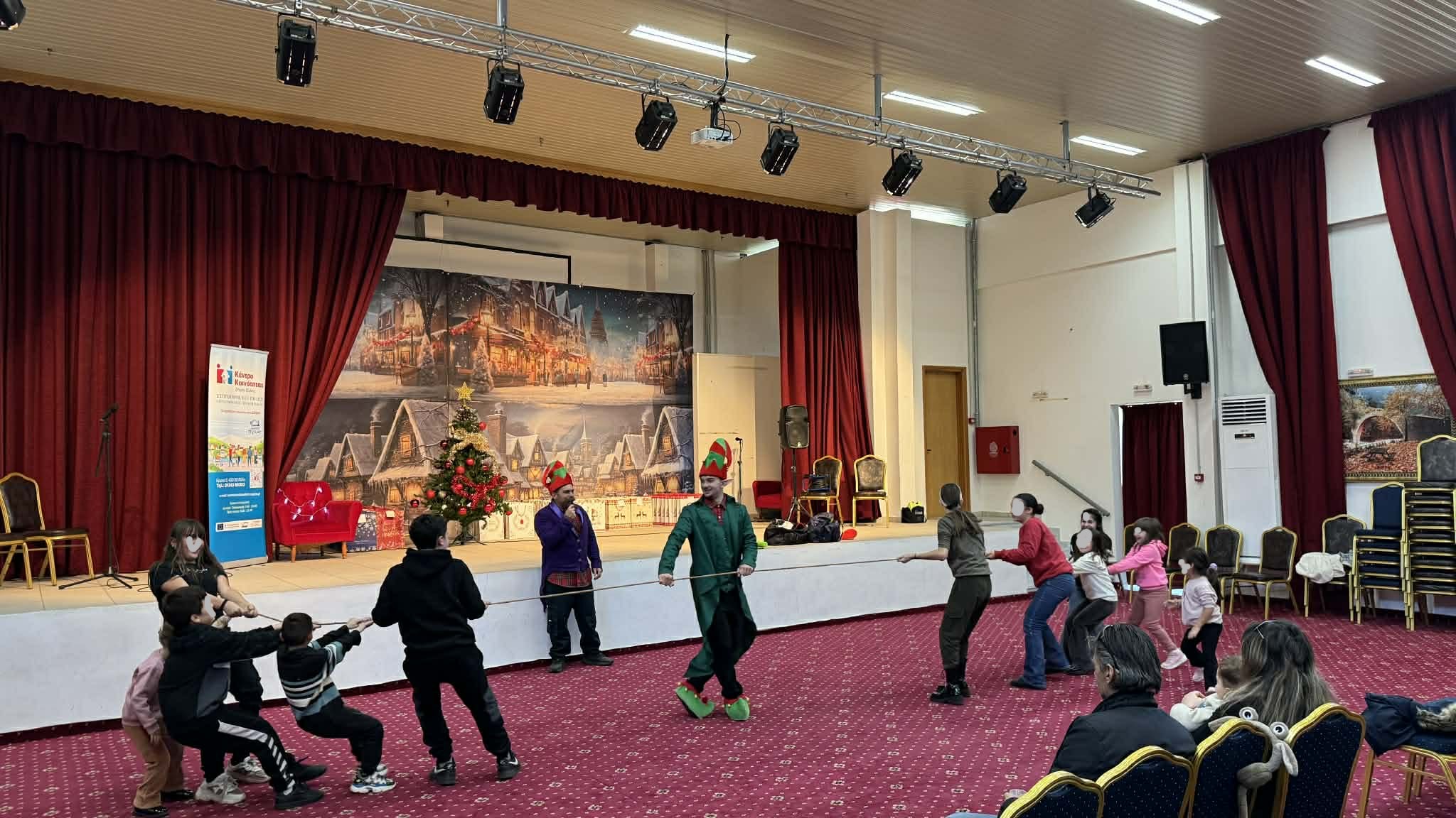 Μέσα σε ένα ζεστό και εορταστικό κλίμα, τα παιδιά είχαν την ευκαιρία να συμμετάσχουν σε ένα διασκεδαστικό δρώμενο με πρωταγωνιστές ένα χαρούμενο ξωτικό και τον αγαπημένο σε όλους Άγιο Βασίλη, ο οποίος με το χαρακτηριστικό του γέλιο και την καλή του διάθεση μοίρασε δώρα, ευχές και χαμόγελα σε μικρούς και μεγάλους. Τα παιδιά είχαν τη δυνατότητα να ψυχαγωγηθούν, να συναναστραφούν με άλλα παιδιά και να γελάσουν με την καρδιά τους. Οι παιδικές φωνές και τα γέλια γέμισαν τον χώρο, ενώ οι χριστουγεννιάτικες μελωδίες δημιούργησαν μια μαγική ατμόσφαιρα που ζέστανε τις καρδιές όλων.