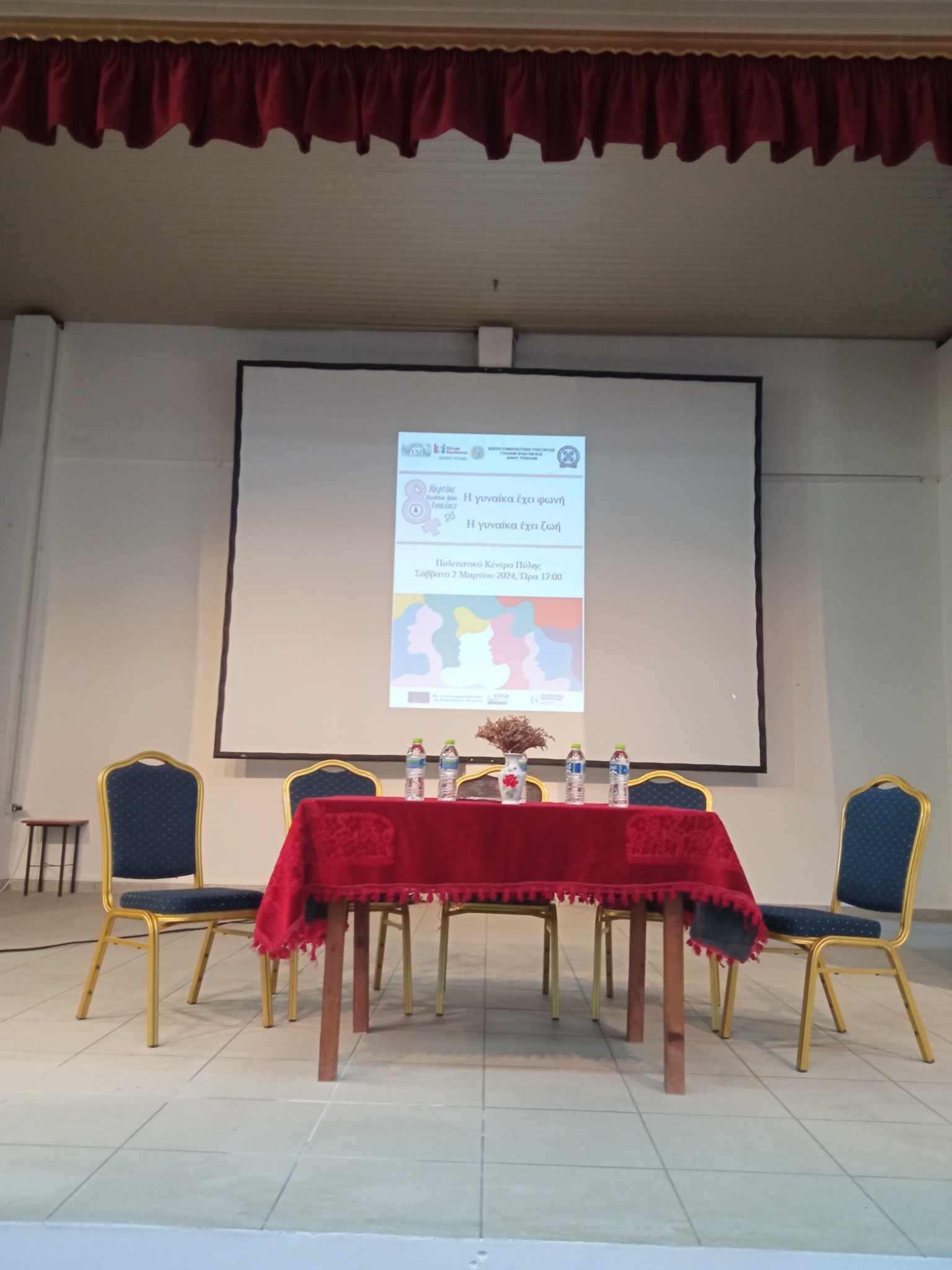 Με αφορμή την Παγκόσμια Ημέρα της Γυναίκας, τα στελέχη του Κέντρου Κοινότητας Δήμου Πύλης σε συνεργασία με το Κέντρο Συμβουλευτικής Υποστήριξης Γυναικών Θυμάτων Βίας Δήμου Τρικκαίων και το Αστυνομικό Τμήμα Πύλης πραγματοποίησε ενημερωτική εκδήλωση, με θέμα: «Η Γυναίκα έχει φωνή! Η Γυναικά έχει ζωή!», το Σάββατο 2 Μαρτίου 2024, στο Πολιτιστικό Κέντρο Πύλης.