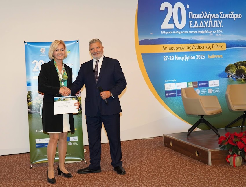 Ως πανελλήνιο πρότυπο στον τομέα της προώθησης της υγείας αναγνωρίστηκε ο Δήμος Πύλης, μέσω της βράβευσής του στο 20ό Πανελλήνιο Συνέδριο του Ε.Δ.Δ.Υ.Π.Π.Υ. Το βραβείο παρέλαβε η Αντιδήμαρχος Κοινωνικής Πολιτικής, Υγείας & Αλληλεγγύης, κα Χαρά Καλιώρα, εκπροσωπώντας τον Δήμο.