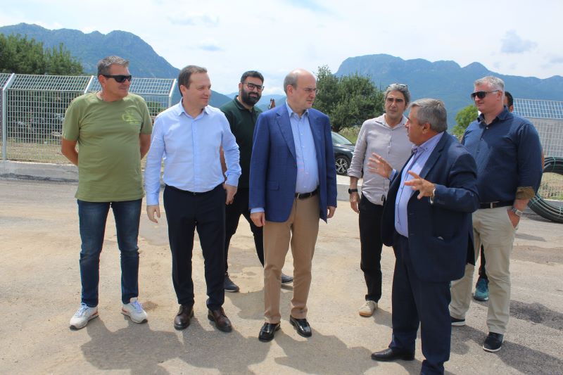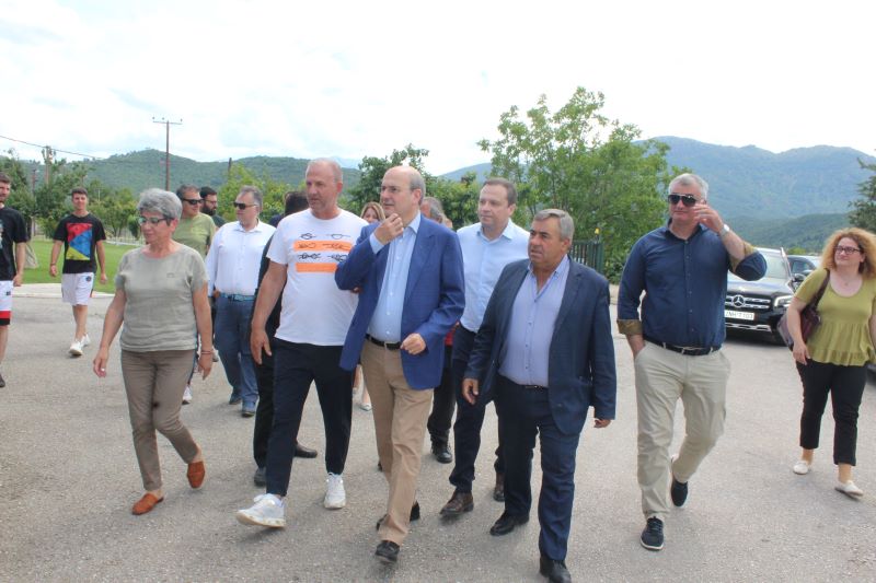 Ακολούθως ο Υπουργός κ. Χατζηδάκης με την συνοδεία του Δημάρχου κ. Μαράβα και των βουλευτών επισκέφθηκαν το υπό κατασκευή έργοδημοτικό Γήπεδο στο Παλαιομονάστηρο  Ολυμπιακών προδιαγραφών, καθώς και την Κτηνοτροφική Μονάδα Γαλακτοπαραγωγής στο Παλαιομονάστηρο των ΑΦΩΝ ΚΑΛΕΤΣΗ..