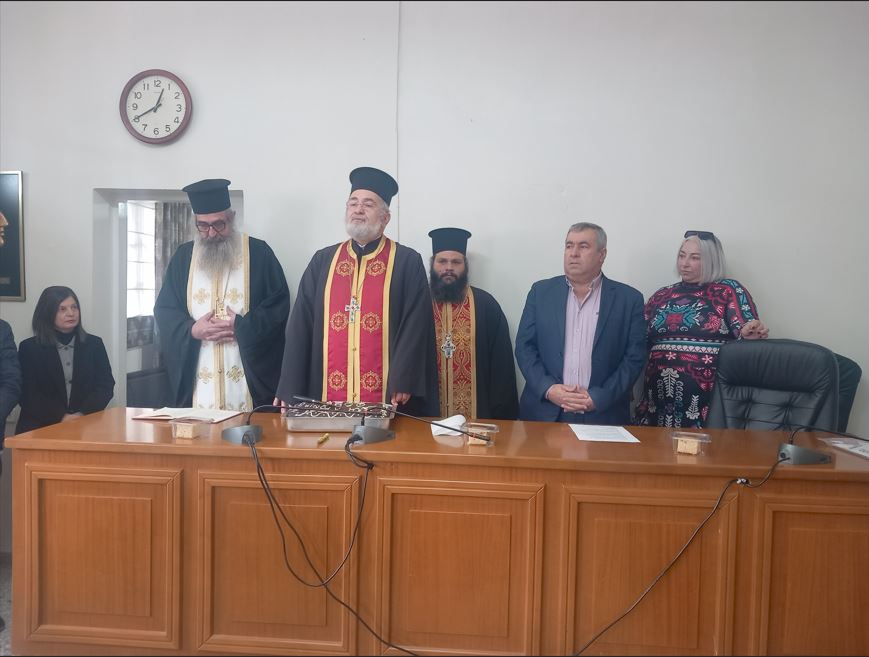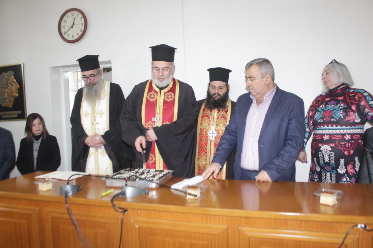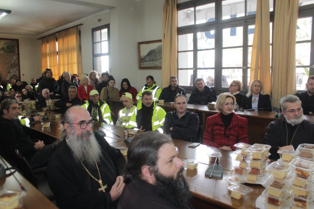 Αγαπητές και αγαπητοί συνάδελφοι, σας ευχαριστώ θερμά για την παρουσία σας στην σημερινή κοπή της πρωτοχρονιάτικης πίτας του Δήμου μας.