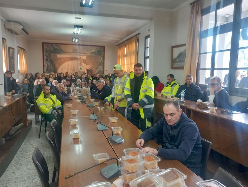 Μέσα σε ένα ζεστό και οικογενειακό κλίμα περιορισμένου εορταστικού χαρακτήρα πραγματοποιήθηκε η κοπή της βασιλόπιτας των Δημοτικών υπαλλήλων του Δήμου Πύλης, την Πέμπτη 12 Φεβρουαρίου 2026 στις 12.30 στην αίθουσα του Δημοτικού Συμβουλίου Πύλης, παρουσία του συνόλου των εργαζομένων του Δήμου Πύλης, Διευθυντών, Προϊσταμένων των Υπηρεσιών Αντιδημάρχων, δημοτικών Συμβούλων προεξάρχοντος του Δημάρχου Πύλης κ. Κωνσταντίνου Μαράβα.