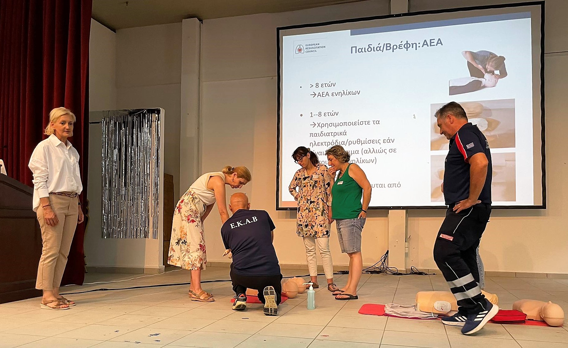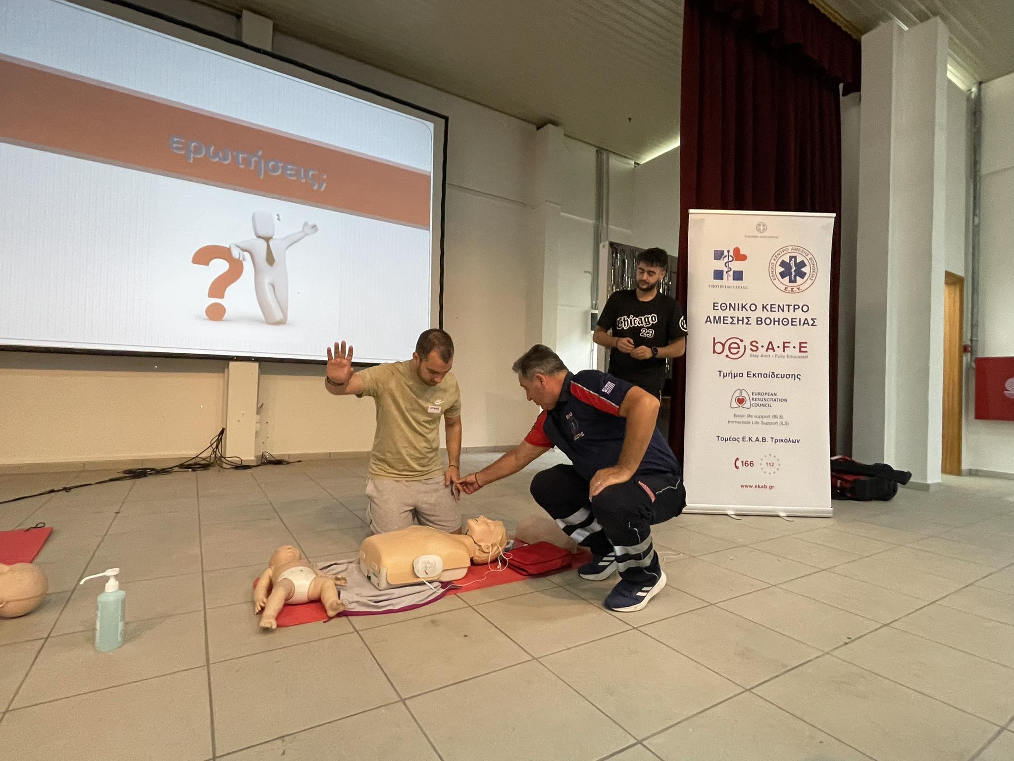 Η Αντιδήμαρχος Κοινωνικής Πολιτικής, Υγείας & Αλληλεγγύης  κα Χαρά Καλιώρα, χάρη στις ενέργειες της οποίας υλοποιείται αυτός ο χρήσιμος κύκλος τής γνώσης,  σε αγαστή συνεργασία με το εκπαιδευτικό τμήμα  του ΕΚΑΒ / παράρτημα Τρικάλων και τους  εκπαιδευτές κ.κ. Βράντζα Νικόλαο, Ρακοβίτη Βασίλειο, Πανάγο Δημήτριο και Καραμπέρη Χάρη, παρείχαν εκπαίδευση στους συμμετέχοντες  για την παροχή πρώτων βοηθειών και τη χρήση αυτόματου εξωτερικού απινιδωτή (AED).