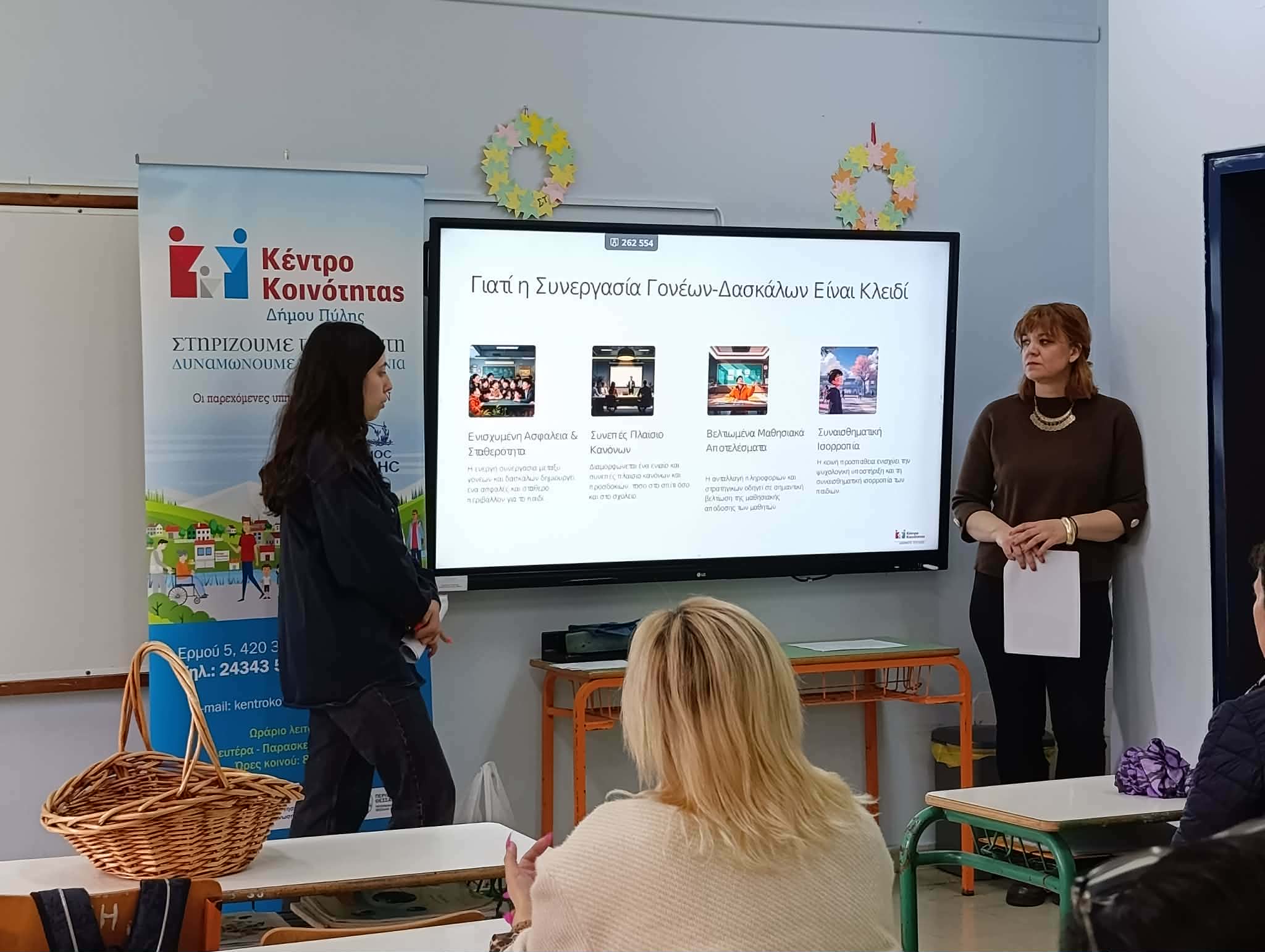 έπειτα από πρόσκληση του διευθυντή. Η θεματική της συνάντησης ήταν η «Οριοθέτηση σε Μαθητές Δημοτικού μέσω Συνεργασίας Γονέων & Δασκάλων», με εισηγήτριες την Ψυχολόγο και την Κοινωνική Λειτουργό.