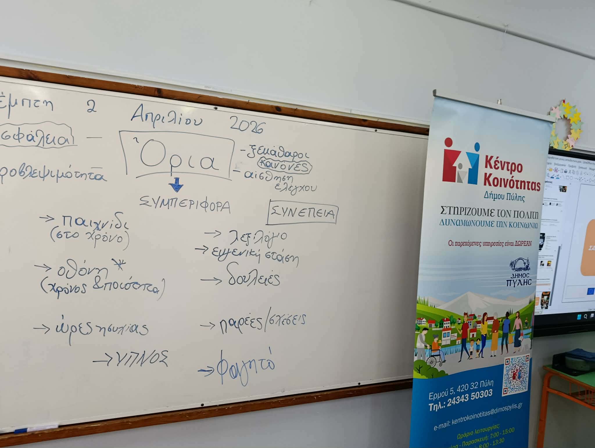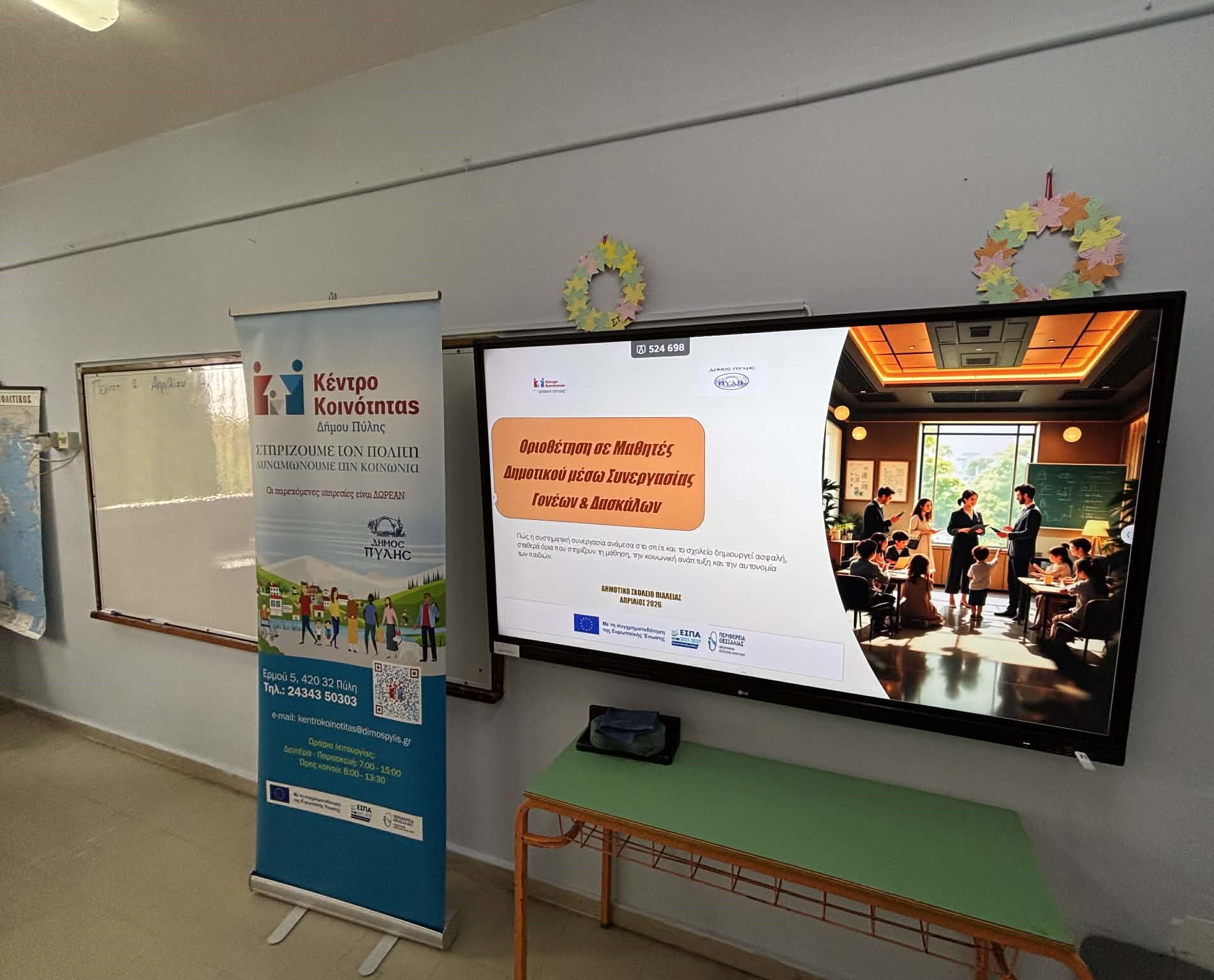 Στο πλαίσιο της συνεργασίας του Κέντρου Κοινότητας Δήμου Πύλης με το Δημοτικό Σχολείο και το Νηπιαγωγείο Πιάλειας, πραγματοποιήθηκε την Τετάρτη 1 Απριλίου 2026 βιωματική δράση με ομάδα στόχου τους γονείς και τους εκπαιδευτικούς των μαθητών,