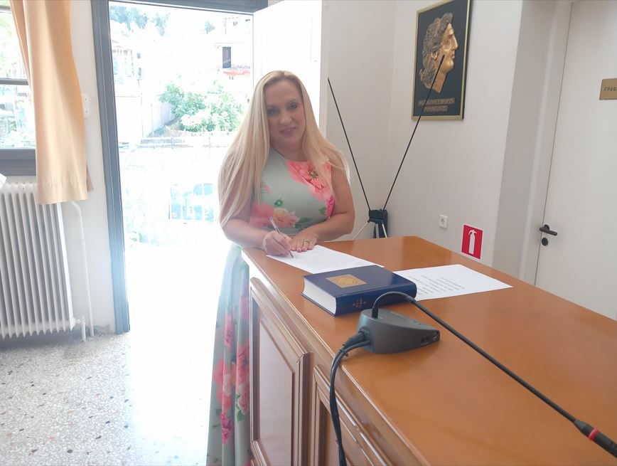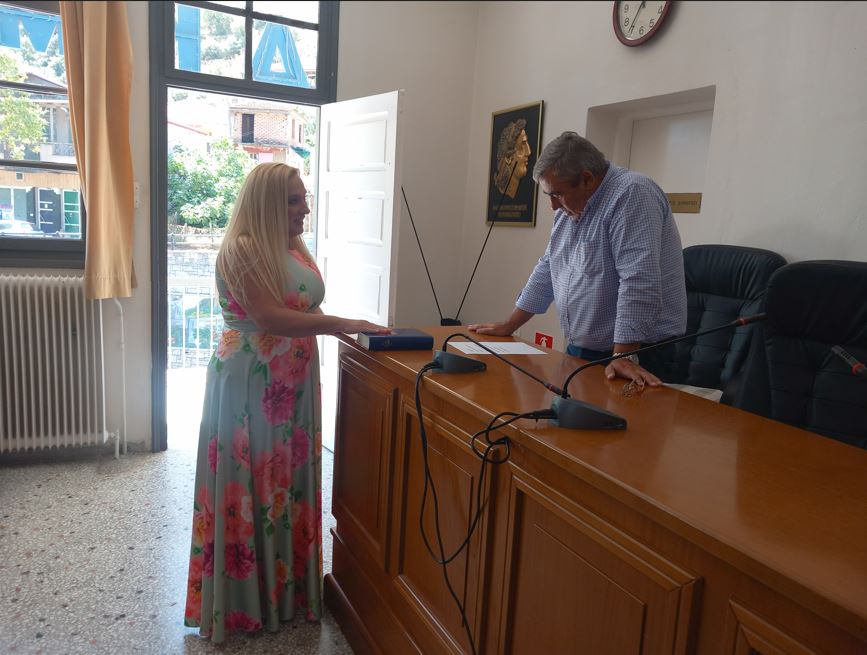 Ορκίστηκε ενώπιον του Δημάρχου Πύλης κ. Κωνσταντίνου Μαράβα στην αίθουσα του Δ.Σ. του Δημαρχείου, νέα υπάλληλος με ειδικότητα οικογενειακή βοηθός.