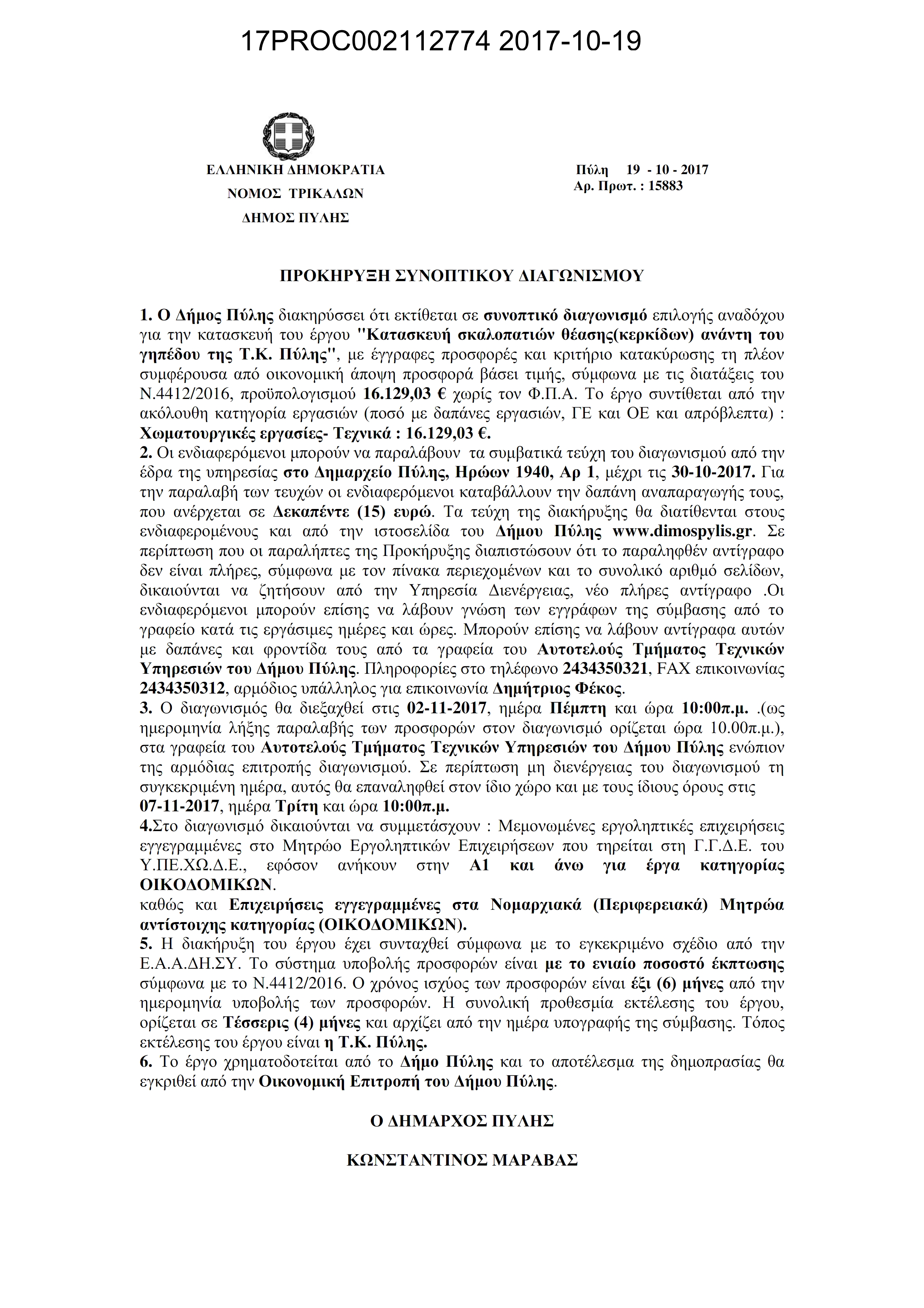 Τιμολόγιο Κατασκευή σκαλοπατιών θέασης (κερκίδων) ανάντι γηπέδου Τ.Κ. Πύλης