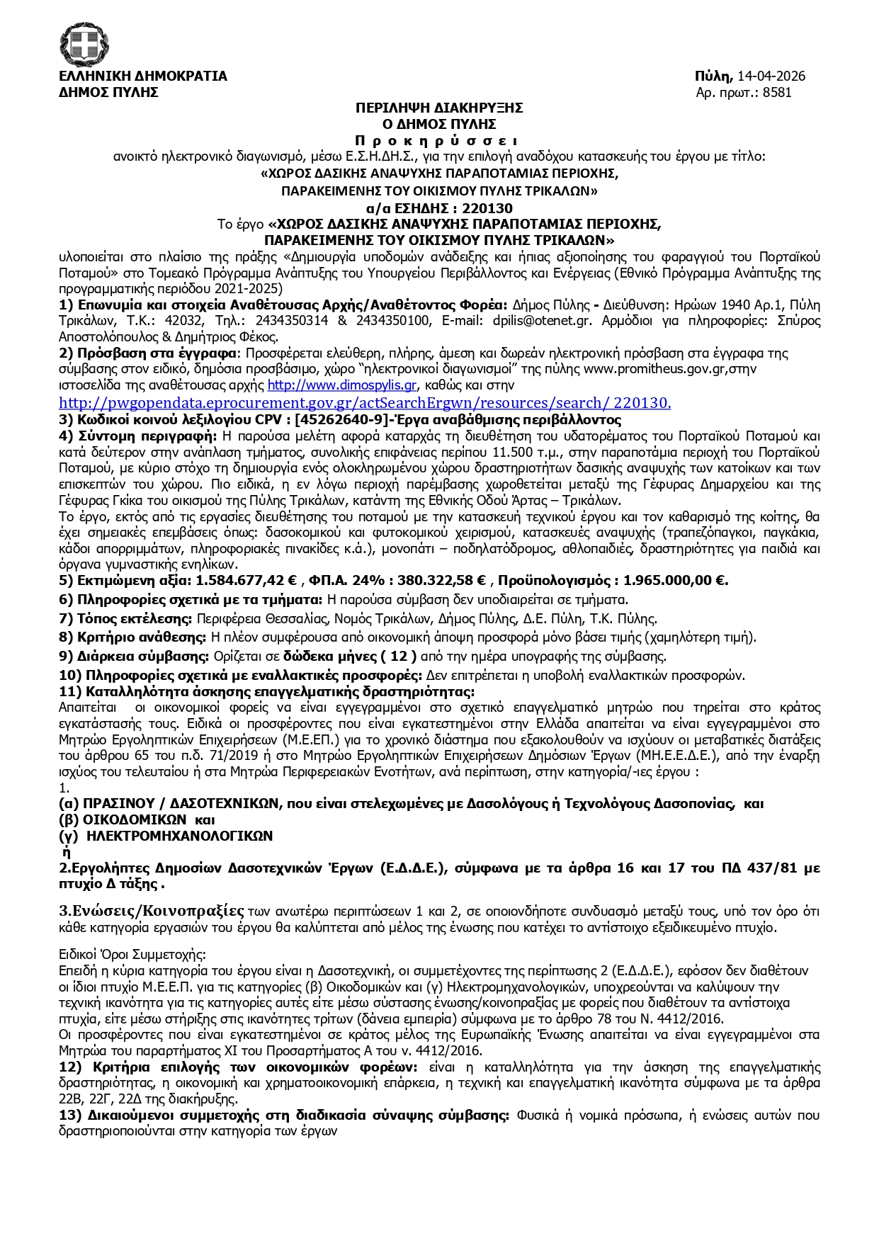 - Περιληπτική διακήρυξη