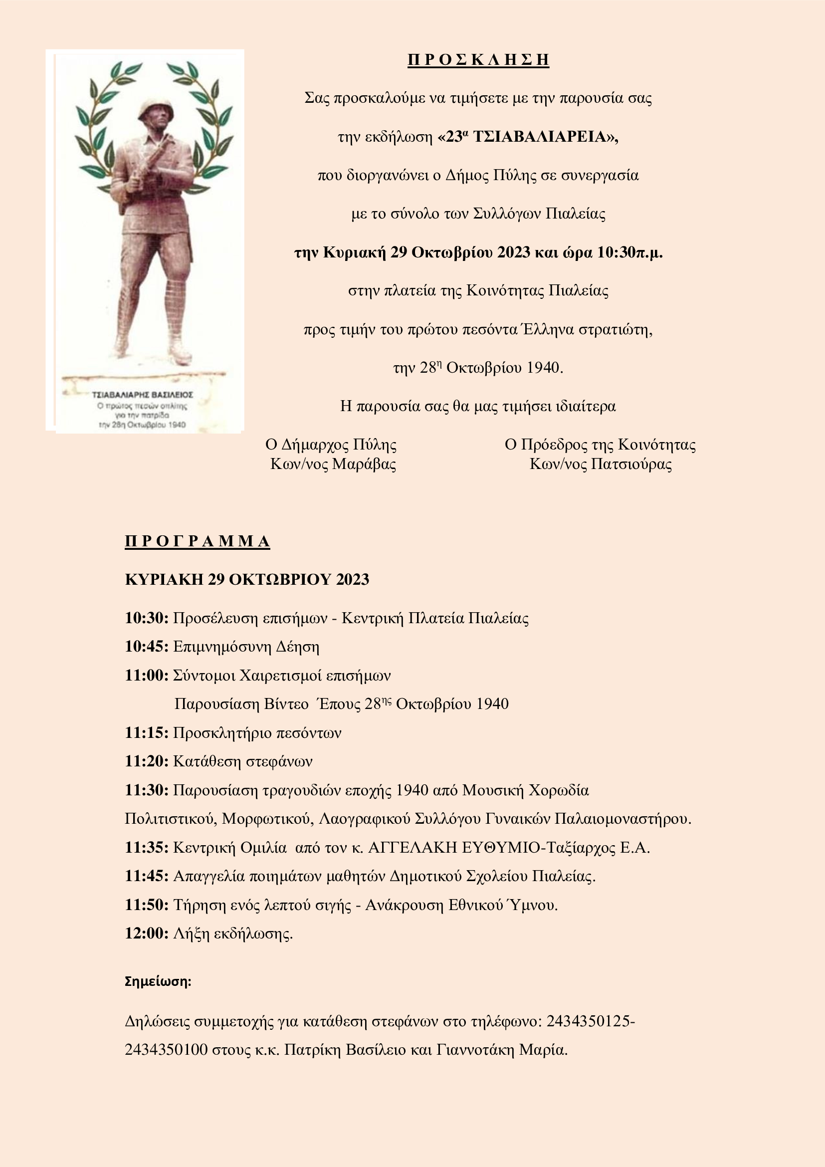 Πρόσκληση στα 23α Τσιαβαλιάρεια, την Κυριακή 29/10/23, 10:30π.μ.