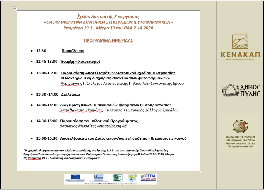 Σχέδιο Διατοπικής Συνεργασίας «ΟΛΟΚΛΗΡΩΜΕΝΗ ΔΙΑΧΕΙΡΙΣΗ ΣΥΣΚΕΥΑΣΙΩΝ ΦΥΤΟΦΑΡΜΑΚΩΝ»