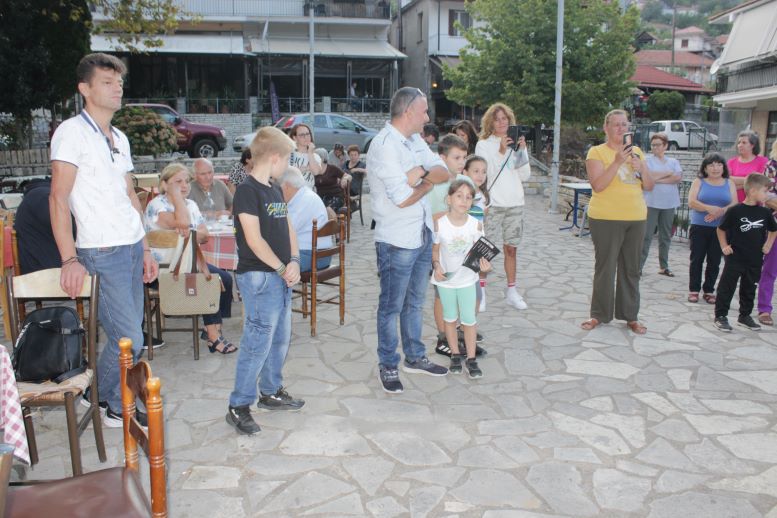 Κατόπιν, σύντομο χαιρετισμό του απηύθυνε η Πρόεδρος του Συλλόγου κ. Ηλιάνα Πράπα, η οποία τον καλωσόρισε τονίζοντας: “Tιμή μας που υποδεχόμαστε τον κ. Bettini στο χωριό μας, τον Ολυμπιονίκη της Ποδηλασίας στους Ολυμπιακούς Αγώνες που διεξήχθησαν στην Αθήνα το 2004, και δυο φορές παγκόσμιο πρωταθλητή“.
