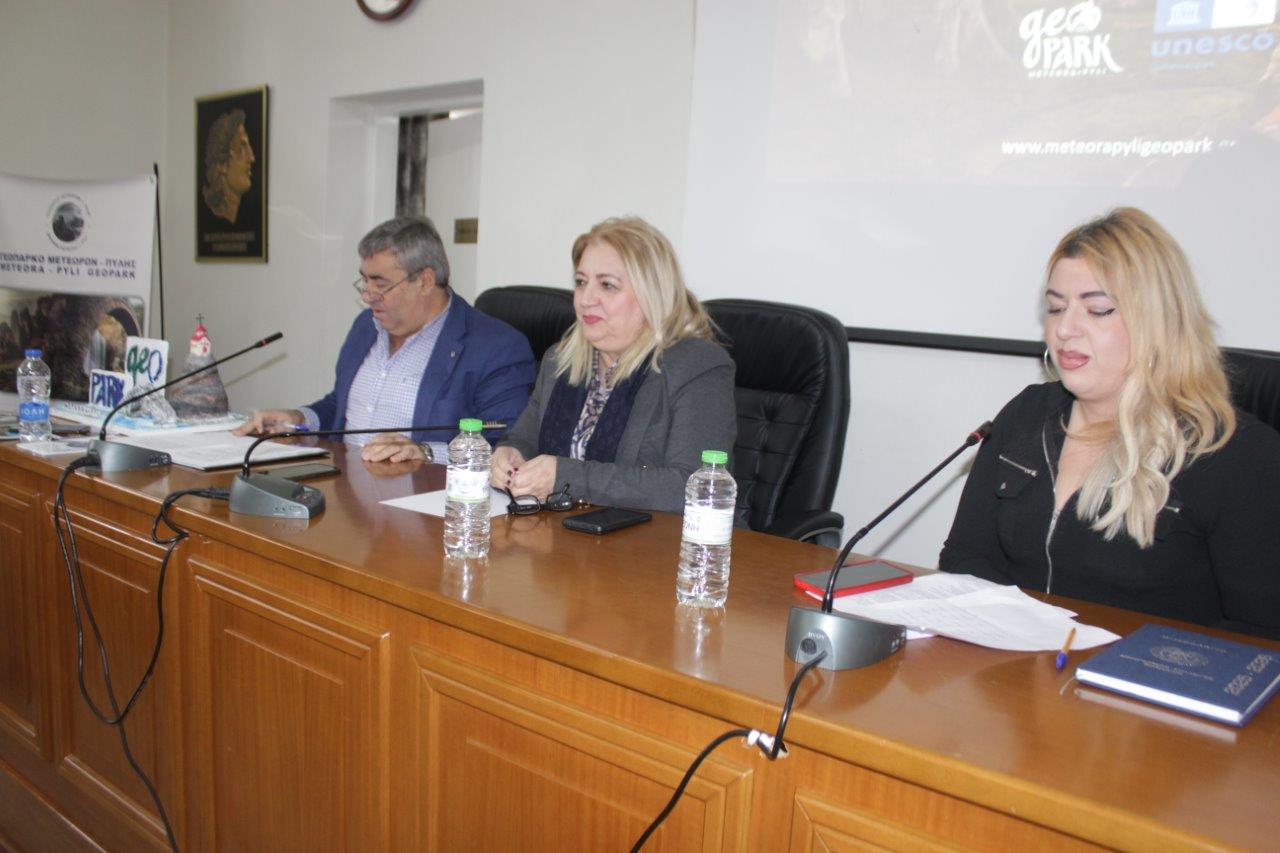 Αναλυτική παρουσίαση των στόχων και δράσεων του Γεωπάρκου Μετεώρων –Πύλης , έγινε από τον Επιστημονικό υπεύθυνο κ. Νίκο Πιτσούλη καθώς αντίστοιχες παρουσιάσεις από το Γεωπάρκο Βίκου-Αώου από τον κ. Χαρητάκη Παπαϊωάννου της Αναπτυξιακής Ηπείρου ,από το Γεωπάρκο Γρεβενών –Κοζάνης από την Επιστημονική υπεύθυνη κ. Άννα Μπάτση.