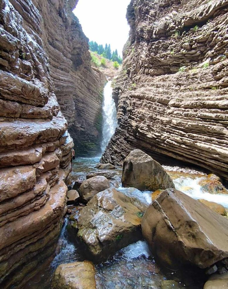 Μετά από αυτό προχωράς λίγο και φτάνεις στο τέλος του φαραγγιού, το οποίο είναι αδιέξοδο και βρίσκεσαι σε ένα εκπληκτικό θέαμα: το θεριό καταρράκτη (έτσι θα τον χαρακτήριζα, λόγω της ορμής και της συνακόλουθης βοής του). Από ύψος 12-15 μέτρων περίπου, στο τέλος του φαραγγιού, να πέφτει ορμητικά και με μεγάλη ποσότητα νερού και να σε καλωσορίζει, προσφέροντάς σου το «μυστικό» του φαραγγιού.