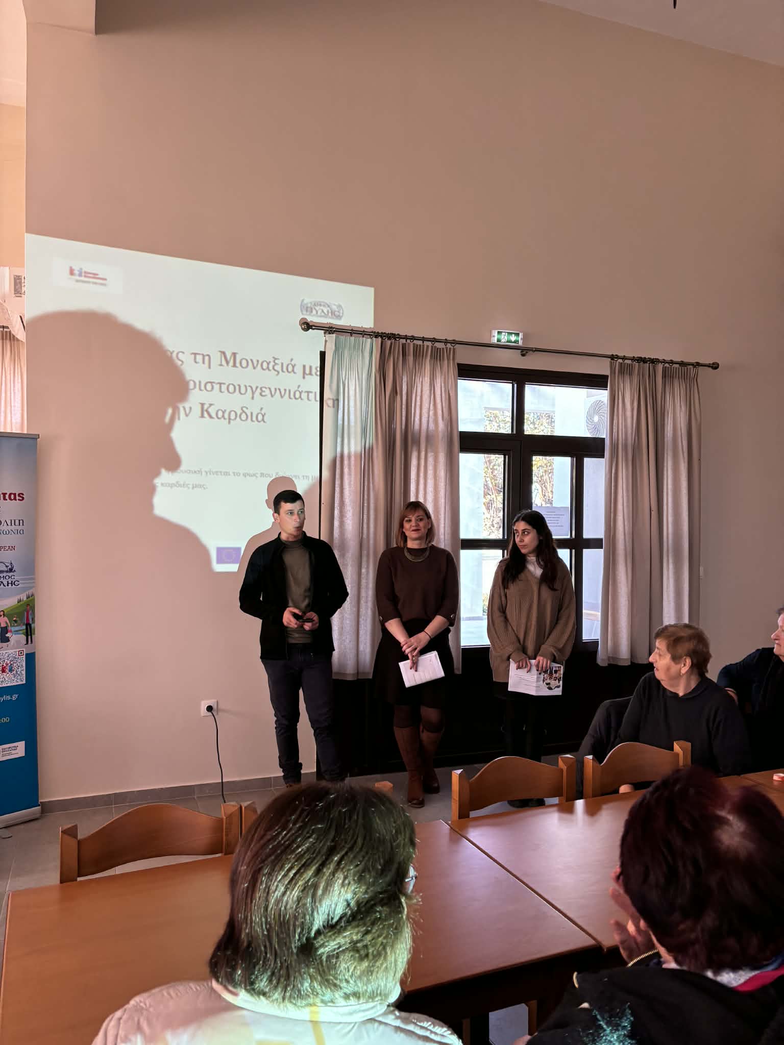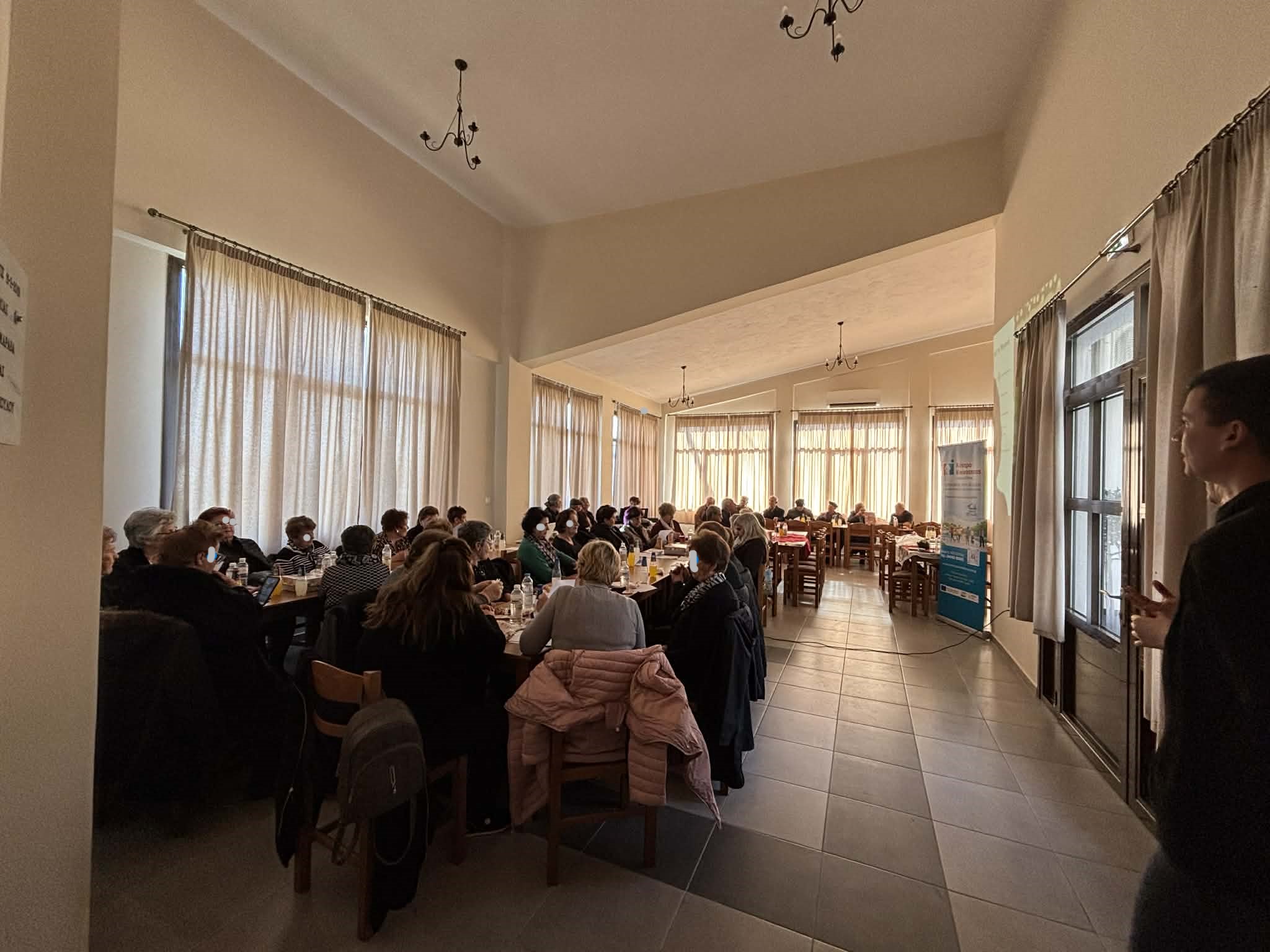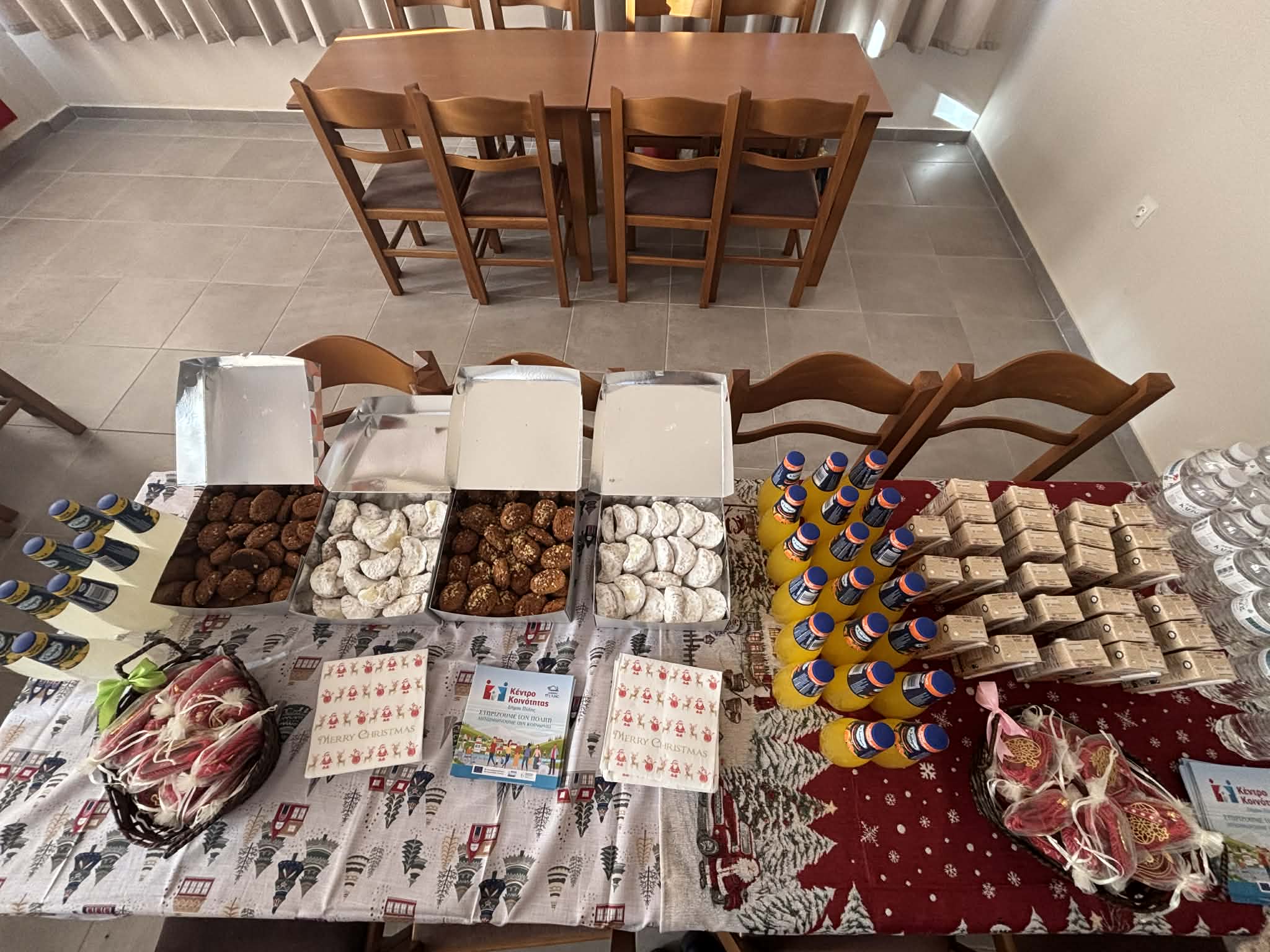 Με τη συνοδεία αρμόνιου από την κα Β. Δημοπούλου, Κοινωνιολόγο του Προγράμματος «Βοήθεια στο Σπίτι», όλοι μαζί τραγούδησαν γνωστές χριστουγεννιάτικες μελωδίες και διάφορα κλασικά τραγούδια, «ξορκίζοντας» τη μοναξιά μέσα από τη δύναμη της μουσικής και της συντροφικότητας. Στο τέλος της εκδήλωσης, μοιράστηκαν χριστουγεννιάτικα αναμνηστικά, ροφήματα και γλυκίσματα, προσφέροντας χαμόγελα και συγκίνηση σε όλους τους συμμετέχοντες. Επιπλέον, μοιράστηκε έντυπο ενημερωτικό υλικό της δομής.